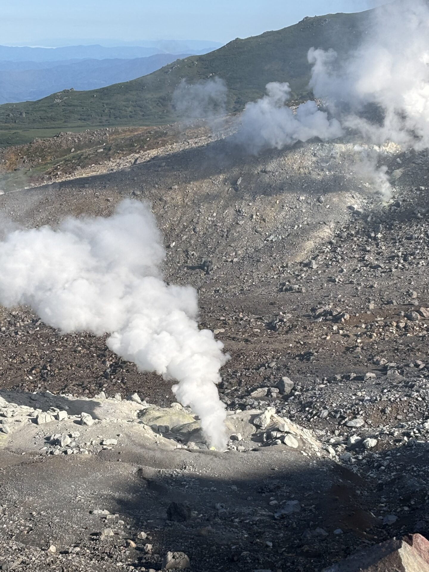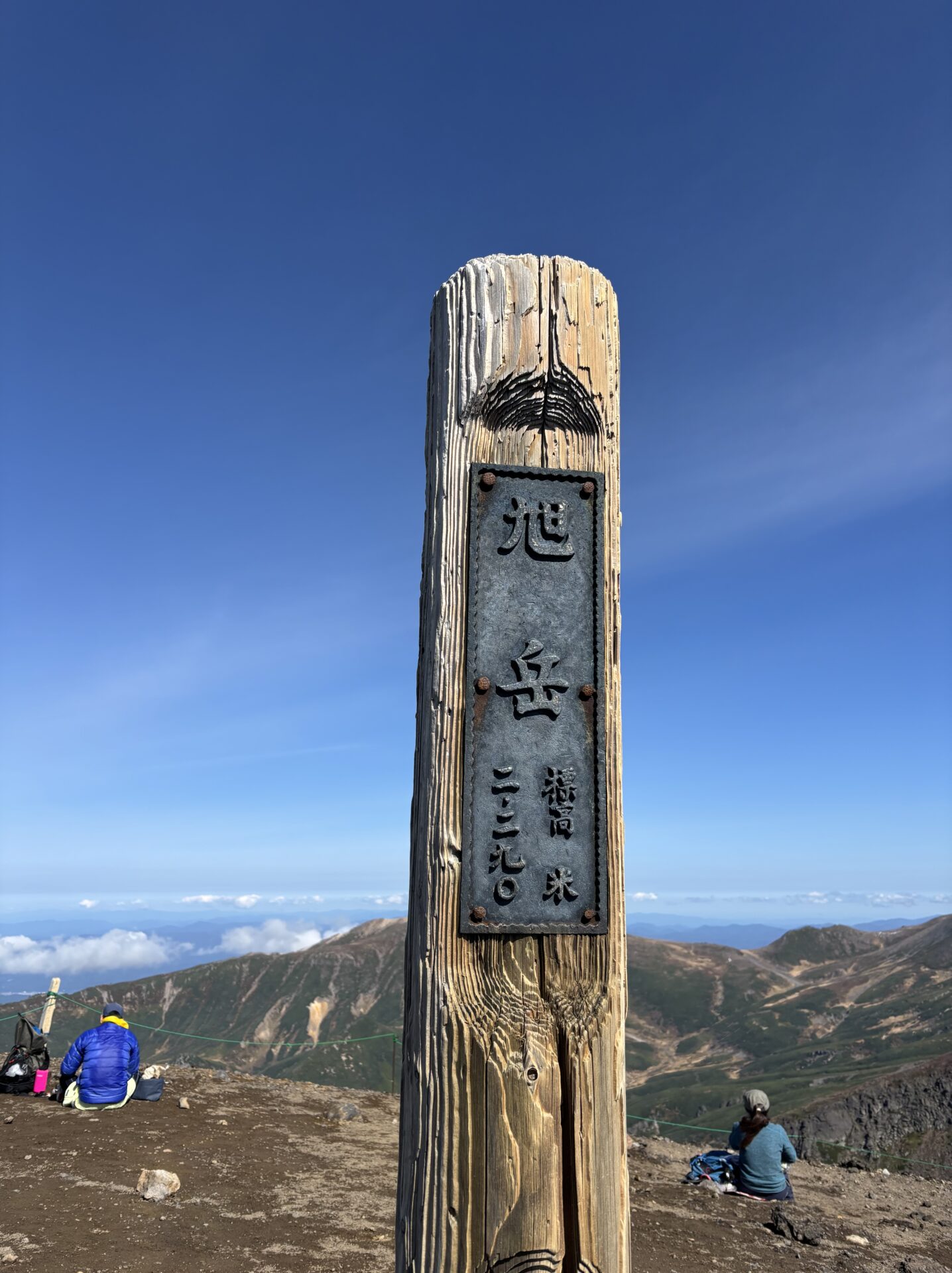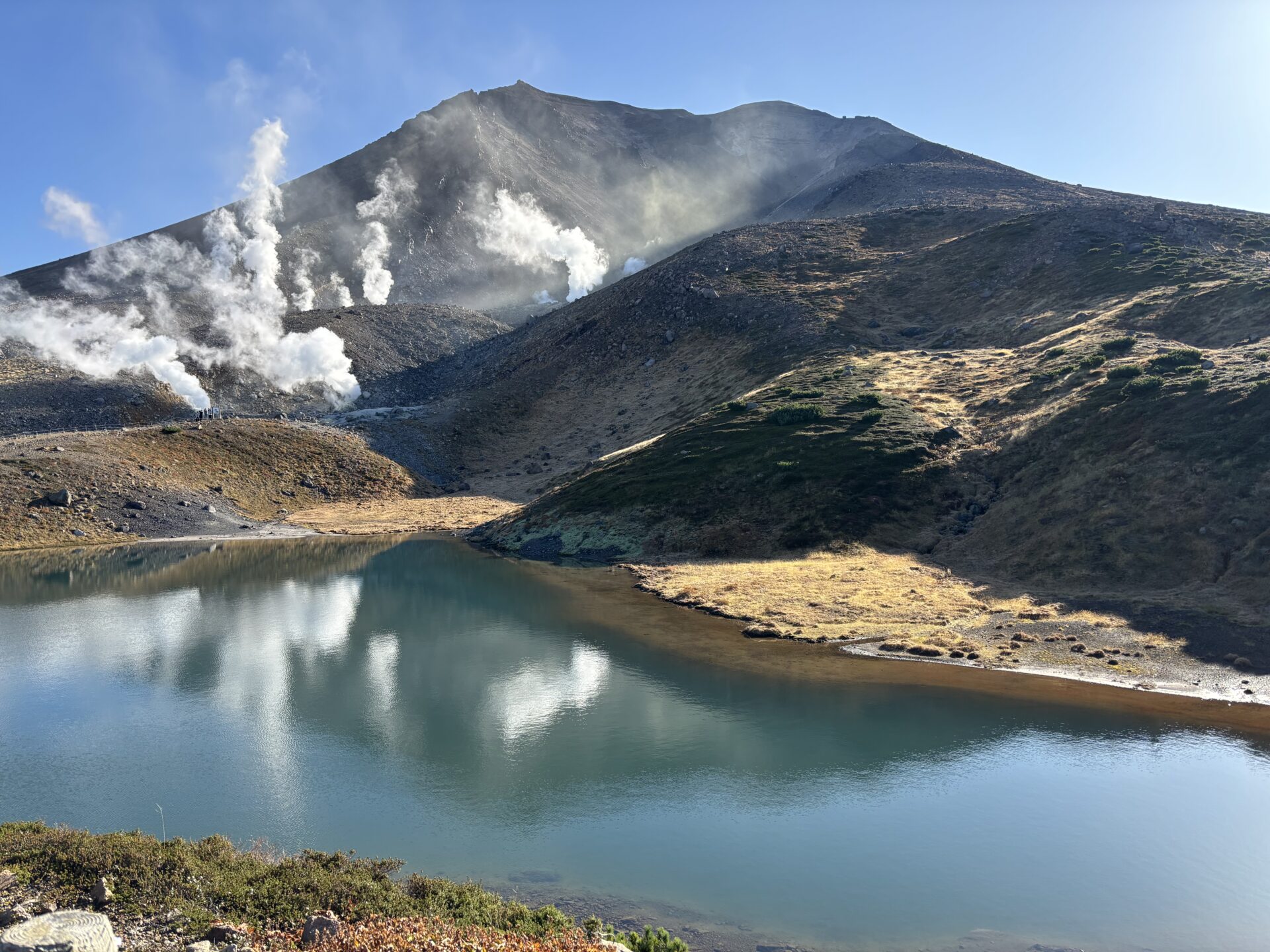 霜の降りてる朝イチのロープウェイに乗り、気持ちいい天気の中、念願の旭岳に登頂!景色もよく、紅葉にはまだ早かったものの、大満足!